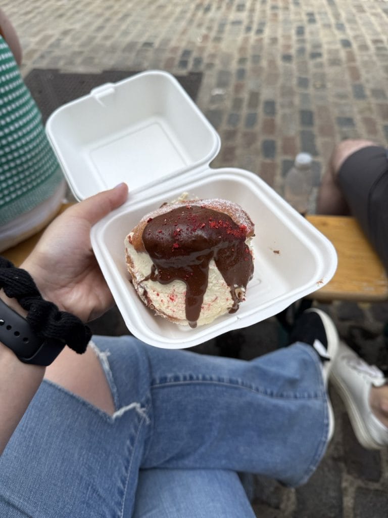 If you get one thing here, make it the roast pork sandwich—honestly one of the best sandwiches I’ve ever had. While you’re at Borough Market, grab chocolate-covered strawberries too.
