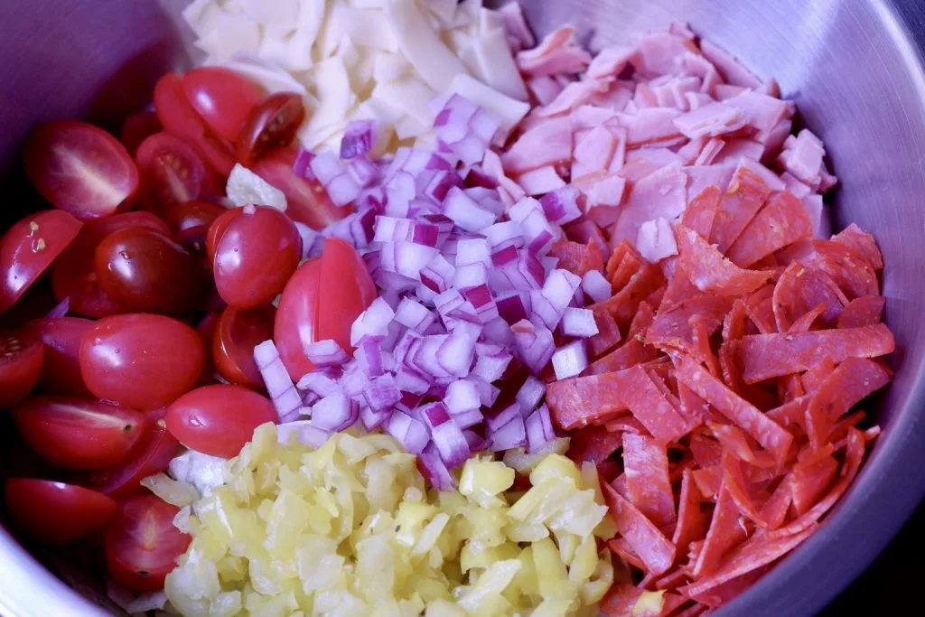 Making Chopped Italian Hoagie Salad